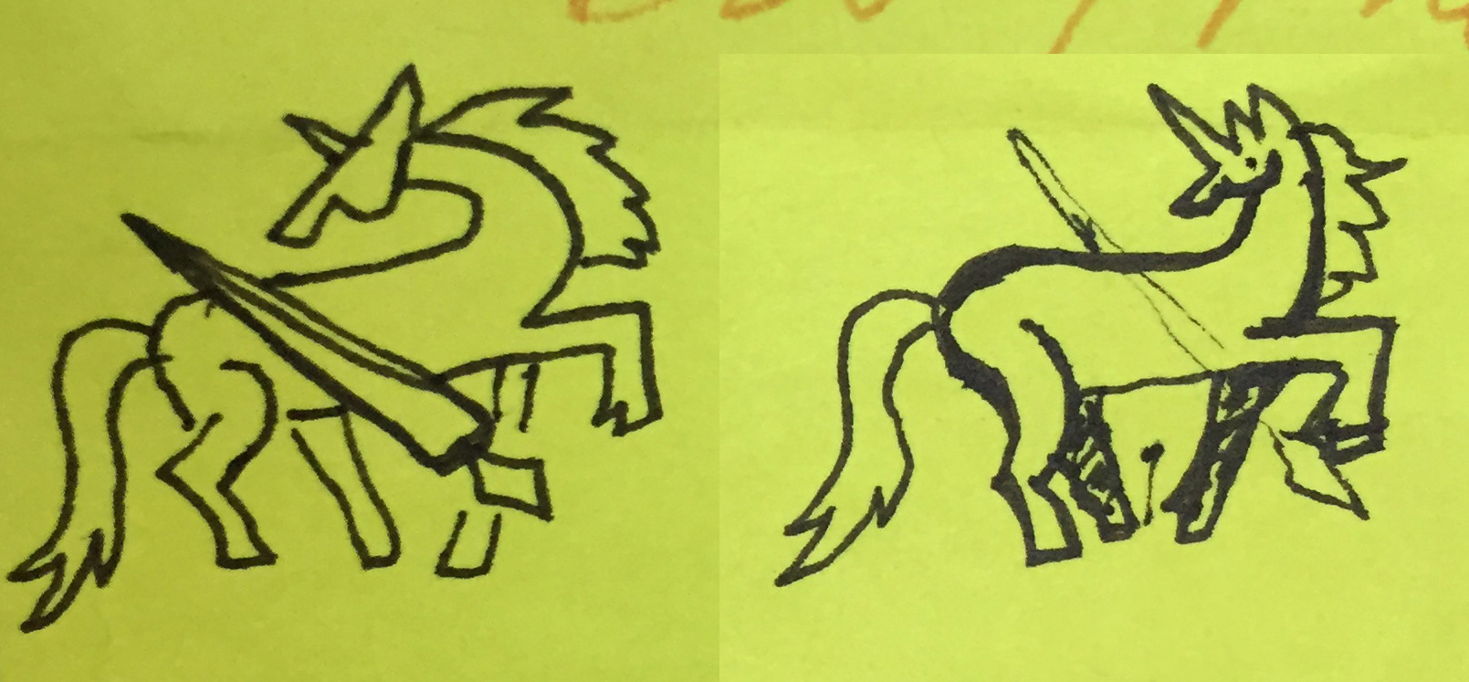 I work for a pen company and my wife got a horse so this idea came about. A fountain pen nib is hidden in the negative space.
